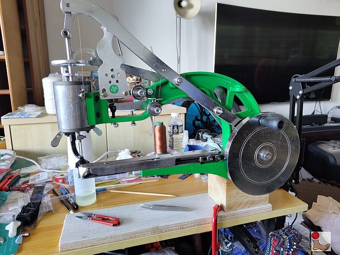I feel the machinery I have accumulated now is, for the time being, enough for my craft. For each of them I have lots of spares and consumables in my stock. From extra needle plates, needle holders, bobbin cases to hundreds of each type of needle, as all 4 machines use the same needle type. One briefcase I have full with feets for the Singers, it must be more than 100 of them, every special or interesting foot I come across, I have it. For the Chinese Leather Shoe Patcher I do modify feets in my own workshop, also for that I have everything 5 to 10 times as spare on stock and it is fun to create modifications.