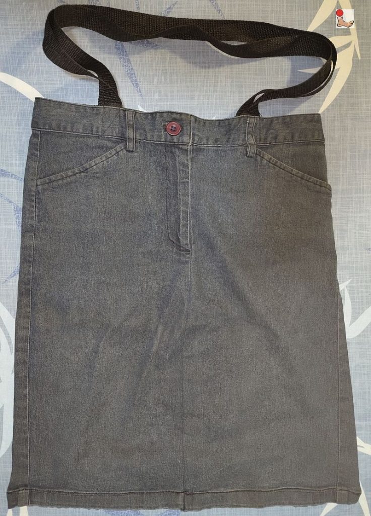 This large, strong, bag made of a recycled Jeans Skirt, is my favorite. It was my first project to make a bag out of a former piece of clothing.