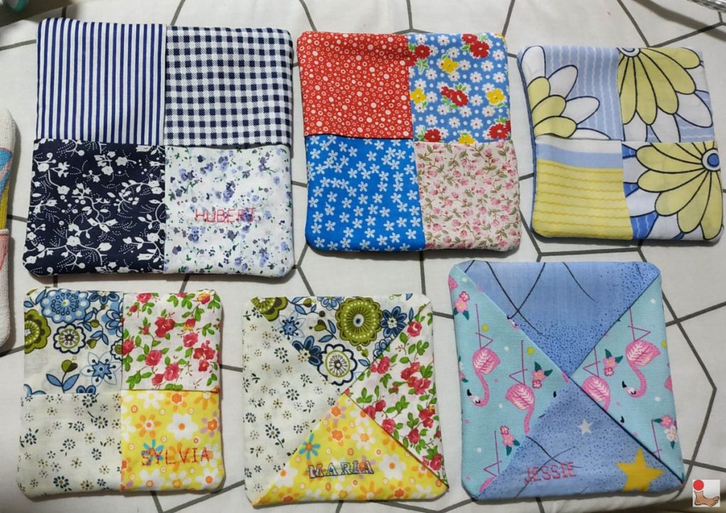 I made them in a big variety of textiles and sizes. We have them everywhere in use, at home and in the office. They are good as they absorb the condensed water from cold drinks, as inside is material of a thick bathtowel. And once in a while, put them in the washing machine, let them dry and they look new again for the next few months.