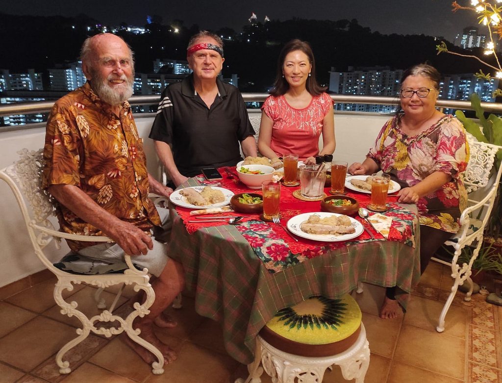 31st December 2024, New Years Eve Dinner at the home of the Oldest Austrian in Singapore, we brought home-made Kombucha, roasted pork with dumplings and Sauerkraut. Hubert Stadler is already 97.